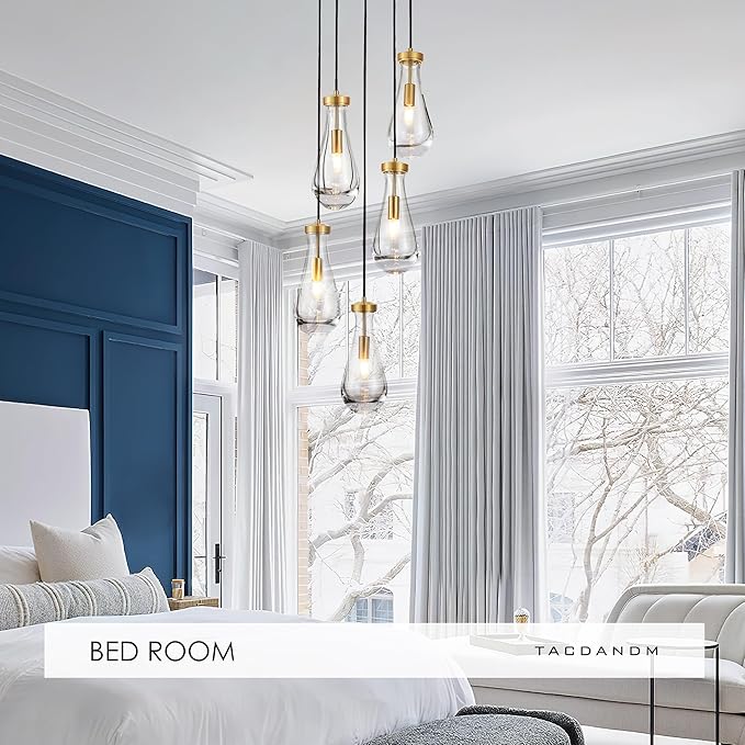 5-Light Raindrop Pendant Light Fixtures, Brass Glass Pendant Lighting, Teardrops Modern Hanging Light for Entryway Foyer Kitchen Island Dining Living Room Hallway
