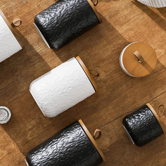- CERAMIC: This Jar Storage Set is made of ceramic material with thick, solid and textured features, personal simple design make it be a decoration in kitchen or a gift for friend in festivals.