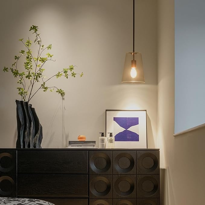 - Bulbs and Warranty - Black pendant light fixture comes with glass shade that has a big diameter of 7.5" and a height of 9.5" compatible with most standard medium base E26 bulbs.Dimmable when used with compatible dimmer switch.Smart bulbs works well.Any questions,our customer support team is here to help in 24 hours