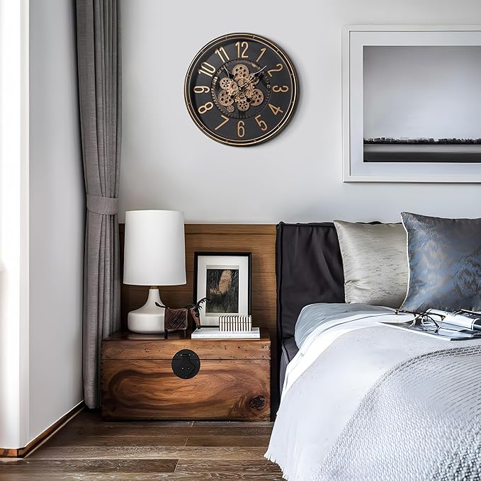 - [Silent Wall Clock ] Precision and Quiet Movement,based on high-torque, quality quartz movement, it function as beautiful wall decor pieces besides telling time, and bring both style and purpose to any room. Sit and watch the time fly by with this stunning gear clock.
