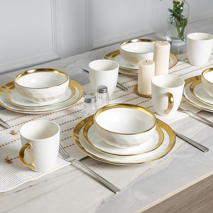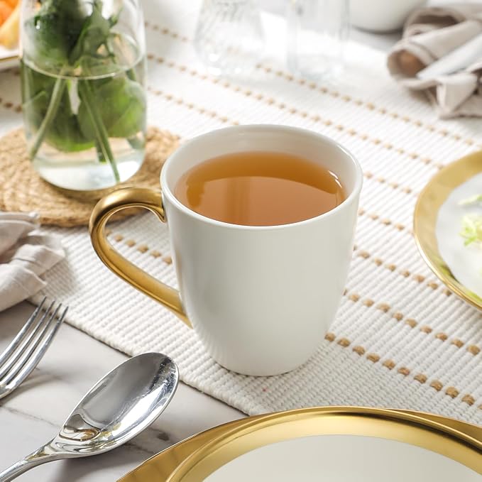 vicrays Coffee Mug Set, 11 Ounce, Set of 6, Ceramic Mug for Men, Women, Unique Glazed Mugs with Handle for Coffee, Tea, Milk, Cocoa, Cereal(White with Golden)