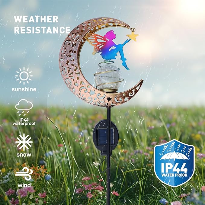 Moon Fairy Solar Garden Lights, Outdoor Decor Pathway Lights, LED Lawn Decor Lights - Gardening Gifts for Women(Moon Fairy Garden Lights)