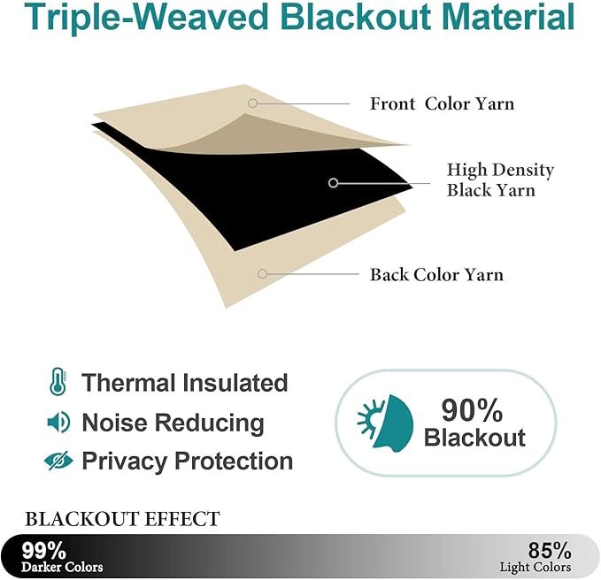 - LIGHT BLOCKING: these bedroom curtains block out 90% sunlight and UV (darker color works better). Get you a good night sleep, afternoon nap and weekend lie-ins. Also protect furniture and carpet from the fading effects of the sun.