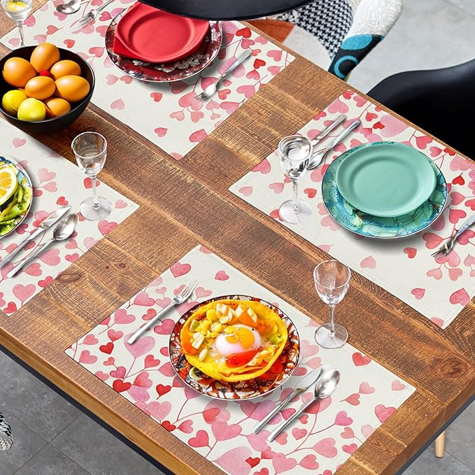 - VERSATILE OCCASIONS: Happy Valentine's Day placemats for dining table are suitable for different occasions and are an excellent decorative mat for any indoor or outdoor setting, such as kitchens, dining tables, hotels, restaurants, coffee shops, and business offices. They are also a beautiful decoration for banquets, dinners, receptions, housewarming, family gatherings, parties, and leisure kitchens. This will definitely leave a deep impression on the guests
