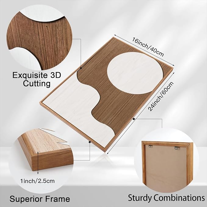 - 【Size for Easy Displaying】The Modern Geometric wall art measures 16X24 inches(40X60cm) On the back of the high quality neutral wall decor, two nails have been installed in advance, so you can easily hang or disassemble the geometric wood grain wall decor by using the nails and transparent silica gel mats provided in the package, very easy to operate.