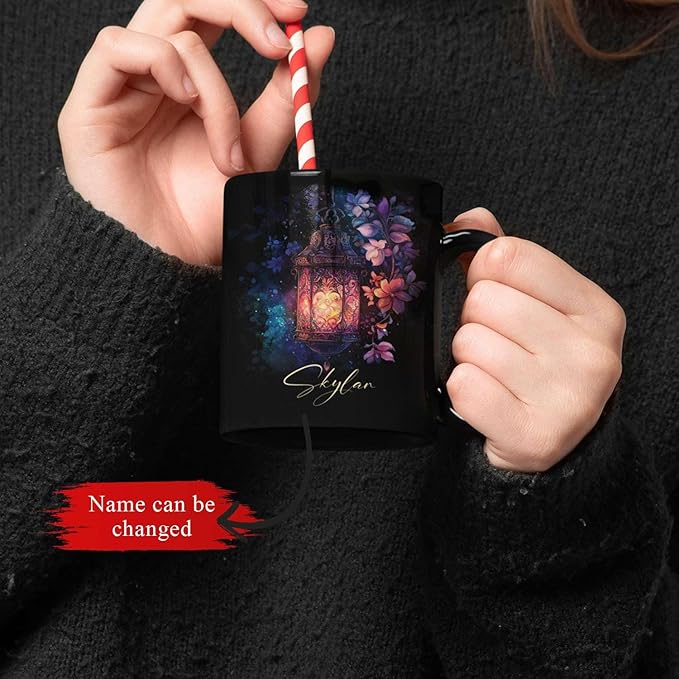 - 💝【UNIQUELY PERSONALIZED】Illuminate your mornings with this Custom Vintage Lantern with Flowers Coffee Mug. Featuring a glowing lantern surrounded by beautiful flowers, this black ceramic cup gift for those who appreciate nature and enchanting designs. Personalize it with a name to create a unique mug gift for friends or loved ones. Click "Customize Now" to add a personal touch and make this 11oz or 15oz mug a special keepsake.