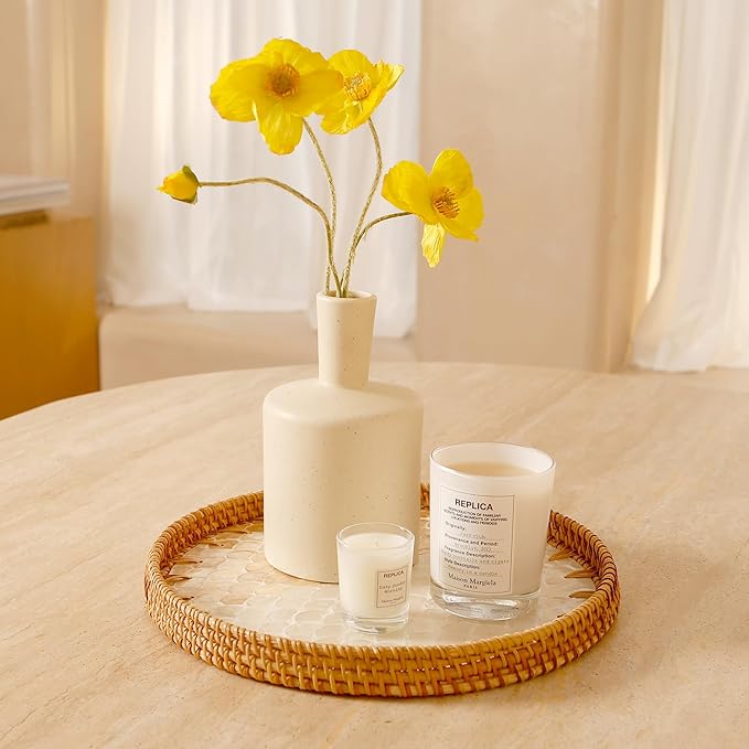 - Natural Rattan and Seashell Design: This tray is crafted from high-quality natural rattan, handwoven with beautiful seashell inlays at the base, showcasing a blend of natural materials and artistic craftsmanship
