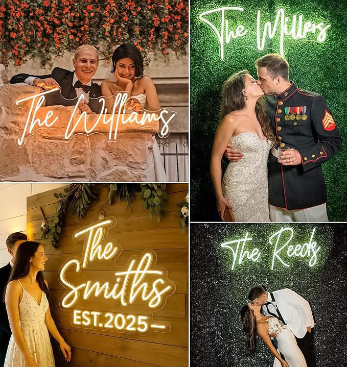 - ✍️【Custom Neon Lights】Personalized neon signs with your idea.You can customize your name,text,logo,emoji,wedding name, salon beauty, bar, bakeries, coffee shop, business christmas party and choose your font, color, size for your own neon sign,which can make your neon signs to be fantastic.Light sign of image or logo design are available.