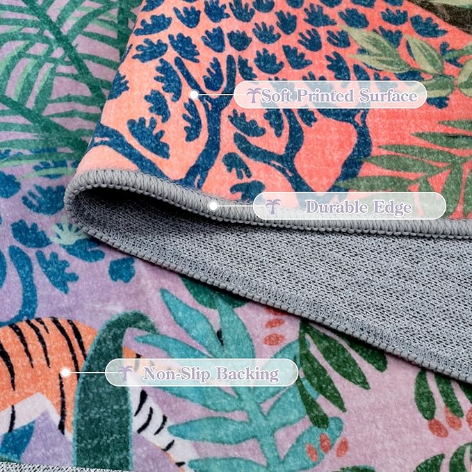 LIVEBOX Machine Washable Area Rugs 8x10 Lavender Girls Bedroom Rug, Soft Ultra-Thin Nursery Girl Carpet for Living Room, Jungle Purple Rugs for Girls Room, Lilac Rug for Nursery Room