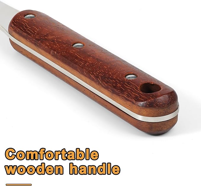 - Solid Kitchen Utensils: Wooden handle combined with polished mirror 304 stainless steel,combines sturdiness and aesthetics, the production process is more complicated, but it's worth it