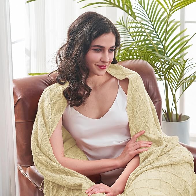 - 【GIFT IDEAS】: Special knitted diamond patterns add a unique accent to your room and people draping it as a shawl. Very suitable for tasteful homeowners. Throw blanket for women, classic but not too tacky as a housewarming gift. Tips: Due to different lighting, display settings, or resolutions, the difference in color happens. We are dying to show the color. To do so, one of the images shows the color difference in different lighting. Hope these instructions would help you to buy a throw.