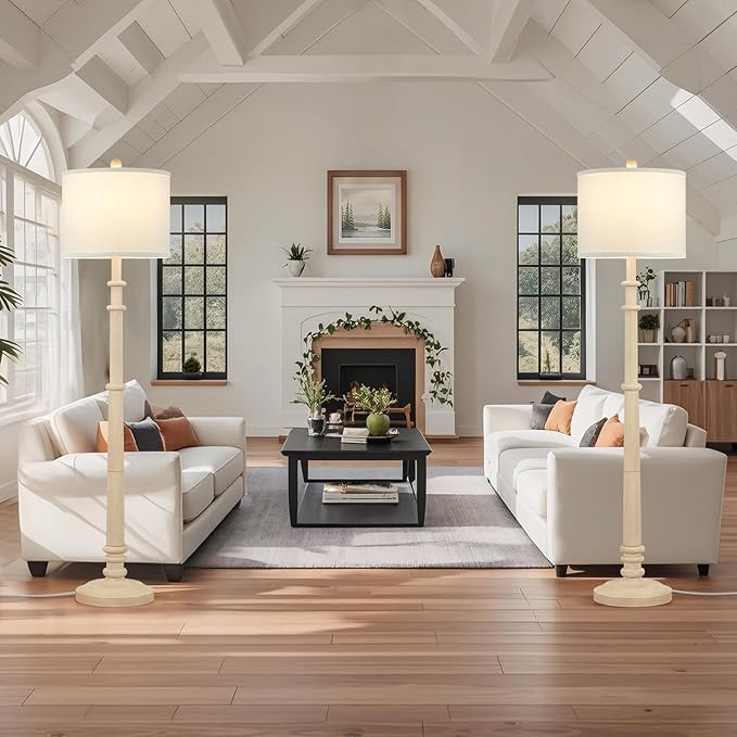 - 𝐕𝐞𝐫𝐬𝐚𝐭𝐢𝐥𝐞 𝐑𝐞𝐬𝐢𝐧 𝐅𝐥𝐨𝐨𝐫 𝐋𝐚𝐦𝐩 - Discover versatility with our farmhouse floor lamp, expertly molded from resin for lasting beauty and reliability. Its classic design, complemented by a crisp white fabric drum shade, seamlessly integrates into any decor scheme from modern to traditional. Ideal for creating a cozy atmosphere in bedrooms, living areas, or reading corners. Simple assembly ensures hassle-free setup