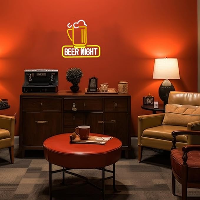 - 【Beer Night Design】Yellow beer glass with white beer light letter design. Beer neon light will become the aesthetic wall decor of the bar and add romance to your room. Light up the neon bar sign and enjoy every night!