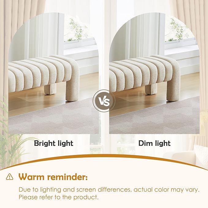 - 【Comfortable Experience】 This bedroom bench is made of delicate fabric and filled with high-density foam, providing excellent sitting feeling and comfort, allowing you to sit down or rest your feet after a busy day. Equipped with four adjustable foot pegs to ensure that the bench is stable and not wobbly during use, protect your floor from scratches and bring you a safer experience