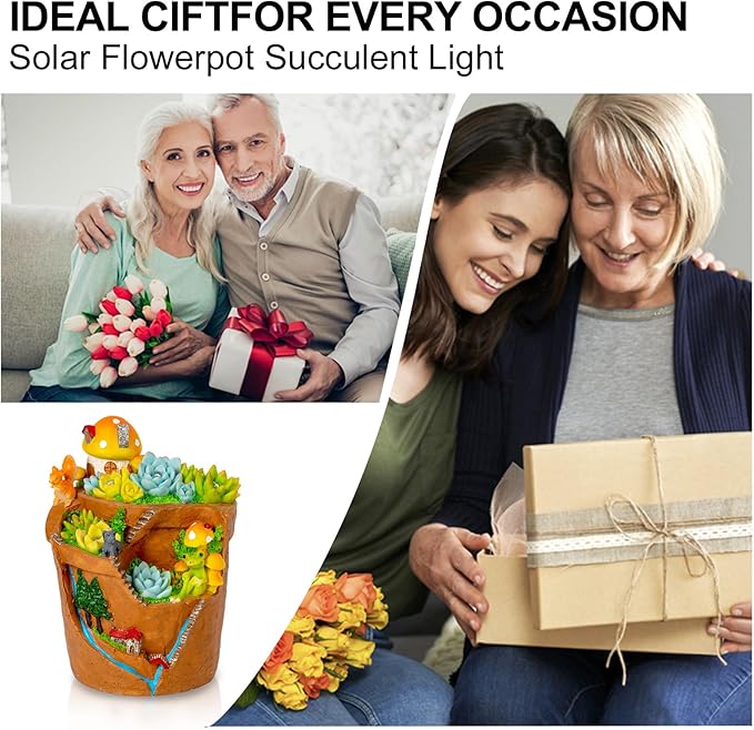 - [Succulent Gifts] Enhance your shopping experience with this unique solar garden succulent statue! Featuring a flowerpot design with a succulent, Placed in the yard, as if transported to the dream garden. it's the perfect gift for women, mothers, and grandmothers. Not only does it add charm and utility to your outdoor space, But it also brings joy to your loved ones.