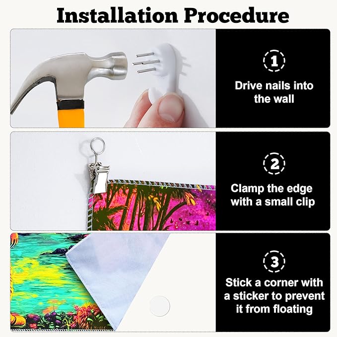 - Versatile Tapestry - With its durable materials and unique design, this blacklight tapestry can serve as a wall hanging tapestry, indie room tapestry, curtain tapestry, dorm room tapestry, ceiling tapestry, bedroom tapestry, glow-in-the-dark artwork or even a picnic blanket.