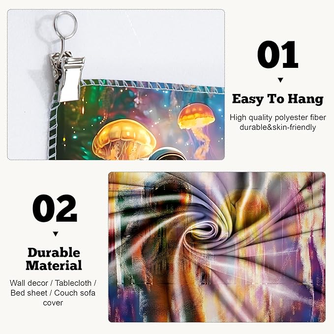 - Tapestry Material: This psychedelic tapestry is made of decent quality polyester fabric, soft touch and durable, fast drying and non-fading.