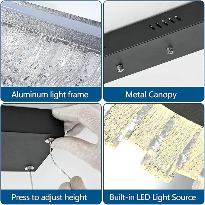 - High Quality Lnear Pendant Light: This restaurant island light features a silver grey brushed high-quality aluminum frame and decorative crystal elements, energy-saving LED light source, creating stunning light reflection and visual appeal