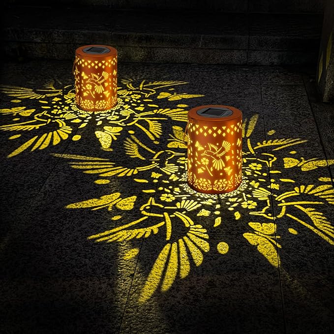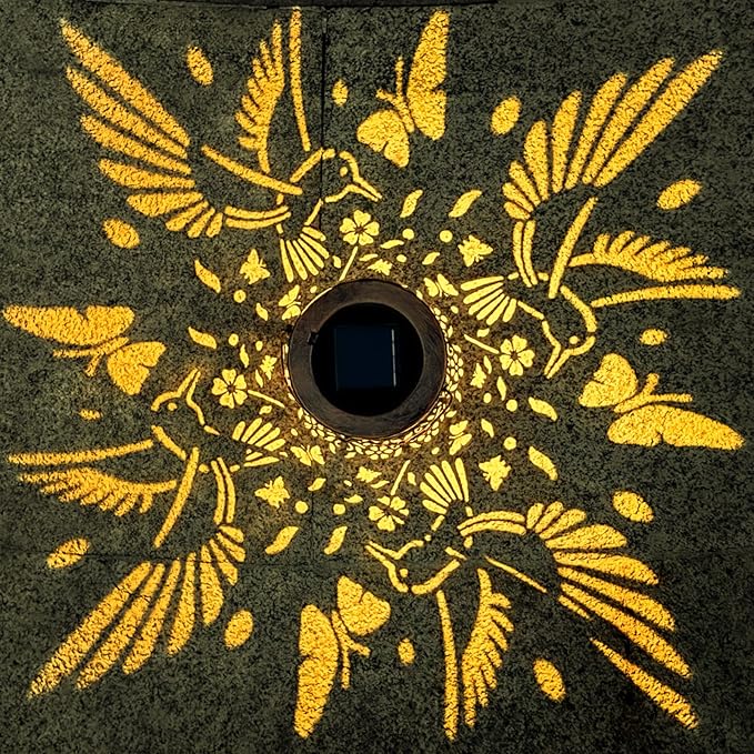 - Graceful Design:The retro appearance, with gold copper color and hollow out metal veneer, the solar hummingbird outdoor lanterns casts bright and warm light in night, accompanied by gorgeous and graceful hummingbird patterns, adding a beautiful atmosphere to the surrounding environment.