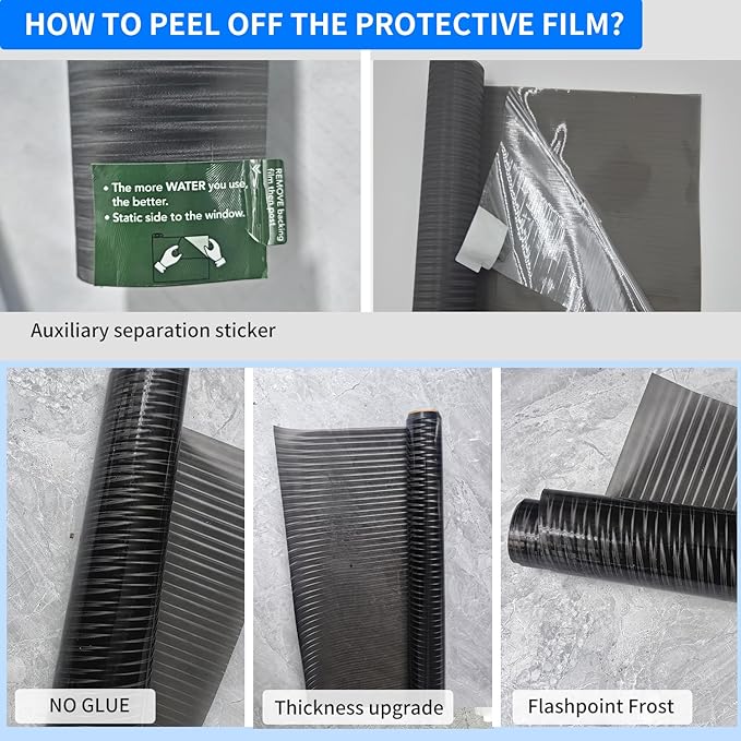 - [Installation Tips]: Please make sure that the surface, edges and corners of the window are clean enough without any dust, and remember to remove the transparent back film before installation; During installation, spray plenty of water on the surface of the window and on the back of the window privacy film to ensure effective adhesion! Note: Not for use with frosted, cut or machined glass that does not have a smooth surface