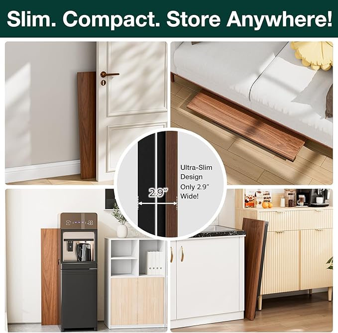 - πππ’πππ¦ ππππ§ πͺππ§π π¦π£πππ-π¦ππ©ππ‘π π¦π§π’π₯πππ β With a folded thickness of only 2.9 inches, this desk fits easily under beds or behind doors. Lightweight and compact, itβs perfect for small-space living or temporary setups like trade shows and pop-up workstations