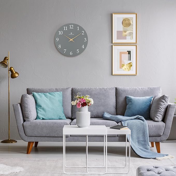 - Minimalist Design: Made of high-quality gray MDF panel and paired with wooden hands, this modern wall clock can suit various home styles and it is a great choice for simple wall decor in your room.