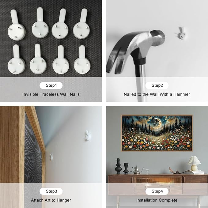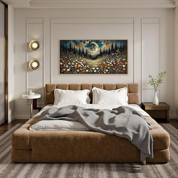 - 【Eco-Friendly and Durable】The Mystical Moon framed Wall Art is made from large thickened canvas material, ensuring their long-lasting and sturdy nature. The printing process involves high-quality inks that are resistant to fading over time. Every aspect of the creation, from the materials used to the production process, adheres to the highest standards of quality.