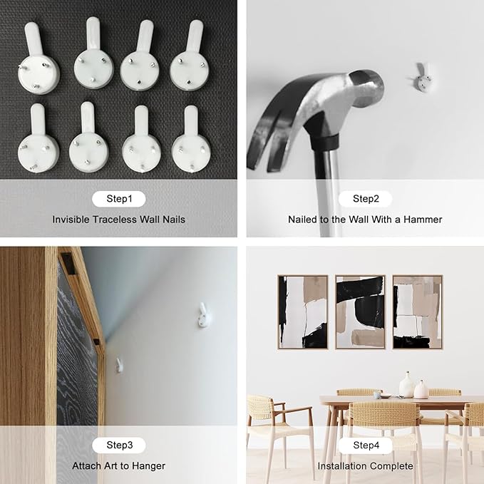 - Simple To Hang: Each of these three modern minimalist art prints pieces measures 16x24inches. It comes with all the necessary accessories so it's simple and easy to install. Simply choose where you want to decorate, make sure it's level and aligned the way you want it, and then nail it down with non-marking nails.
