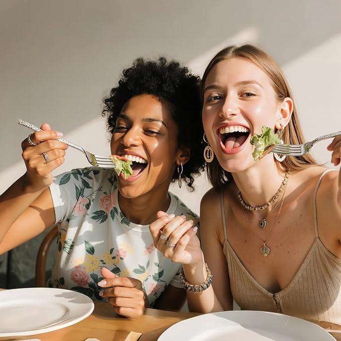 - Premium Silverware Set for 12: Crafted from durable 18/10 stainless steel, this cutlery set resists rust, corrosion and staining. Dishwasher-safe for easy cleaning, it maintains shine and strength, making it a long-lasting 18/10 stainless steel flatware