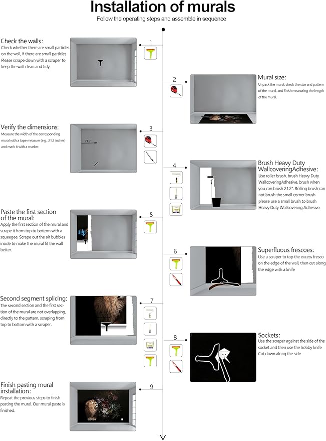 - Construction Installation: Each part of the mural is marked with a serial number underneath, no overlap, direct docking, in order. (Please refer to installation instructions)