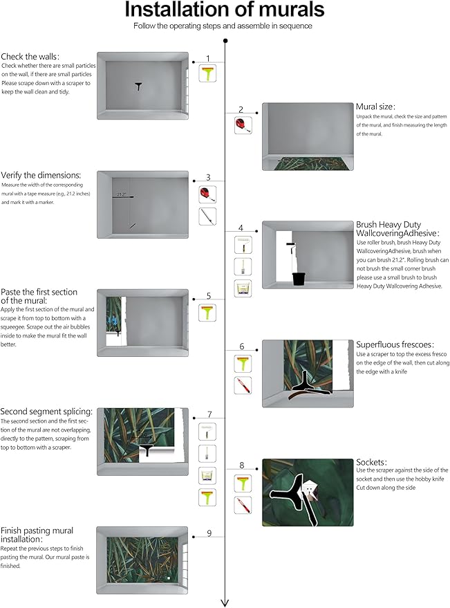 - Warm tip: This mural is not peel and stick, you need to buy your own glue, it is recommended to use Heavy Duty Wallcovering Adhesive.