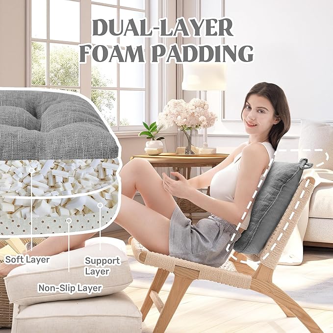 - Secure & Non-Slip Design: Featuring a non-slip bottom and adjustable straps, this cushion stays firmly in place on any chair, preventing unwanted slipping and shifting. The added security means you can enjoy a stable seating experience without constant adjustments. Plus, with multiple packs available, you can easily upgrade several chairs at once for a coordinated look.