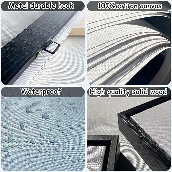 - Easy to Hang and Clean: Canvas Prints Already Stretched on Wooden Frame with Hooks Mounted on Each Panel for Easy Hanging out of Box. Every canvas panel has a black hook already mounted on the wooden frame for easy hanging out of the box.