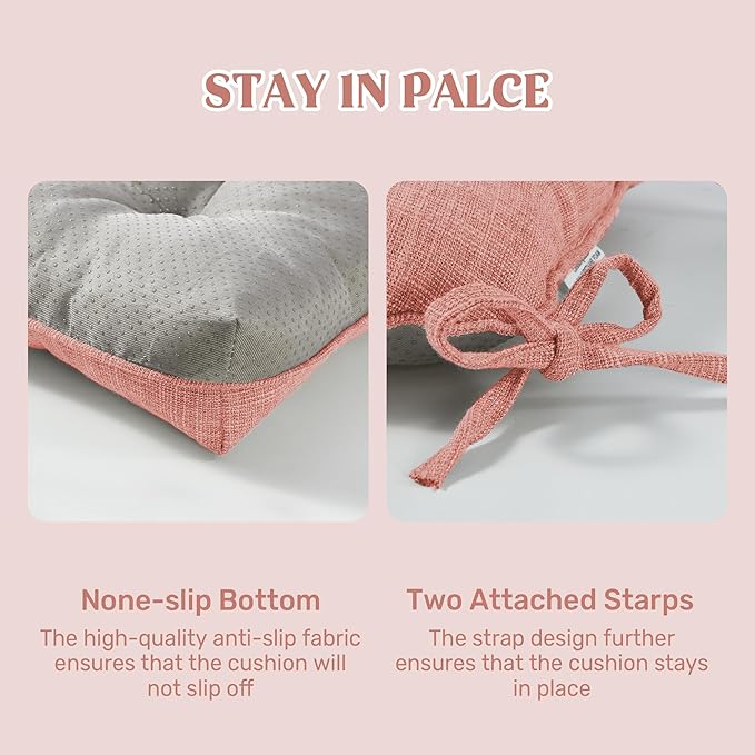 - Secure & Non-Slip Design: Featuring a non-slip bottom and adjustable straps, this cushion stays firmly in place on any chair, preventing unwanted slipping and shifting. The added security means you can enjoy a stable seating experience without constant adjustments. Plus, with multiple packs available, you can easily upgrade several chairs at once for a coordinated look.