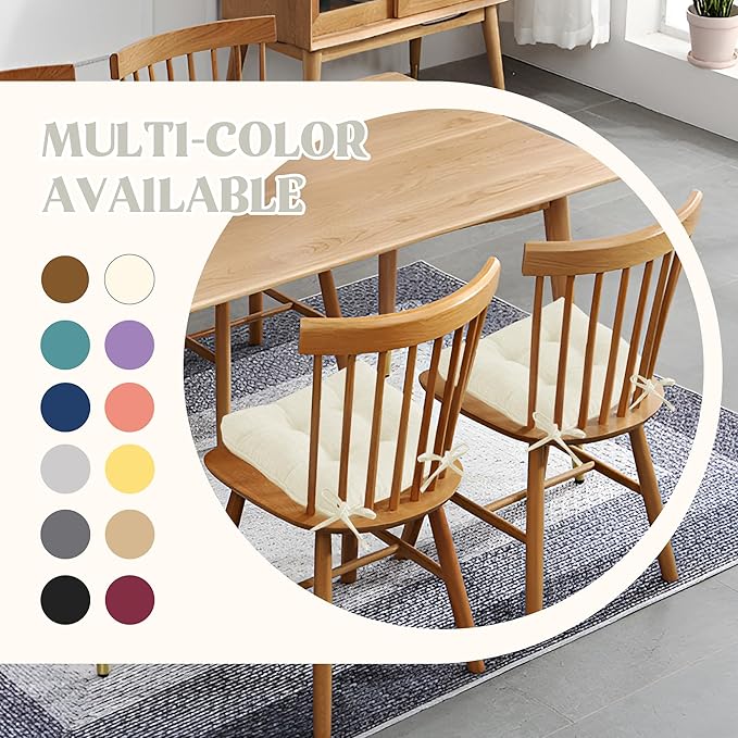 puredown® Chair Cushions for Dining Chairs, Tufted Memory Foam Chair Pads with Non-Slip Backing, Kitchen Seat Cushions with Ties, Washable Seat Pads Set of 4, 15.5" x 15.5" x 4", Ivory