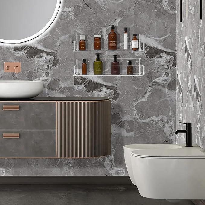 Acrylic Spice Rack Wall Mount-12 Inch, Clear Spice Shelf Storage Holder, 4 Pack Hanging Seasoning Rack Organizer for Cabinet Door, Cupboard or Wall Kitchen (Adhesive or Screw)
