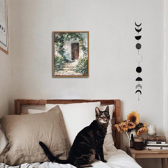 - Framed Canvas Wall Art: This rustic cottage-style spring garden oil painting captures the charm of blooming florals in a countryside setting. It brings warmth and serenity to any room—perfect for enhancing your living room, bedroom, or home office with vintage floral elegance.