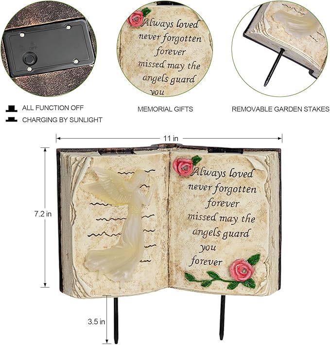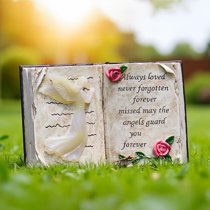 - 🪽【Durable Resin Material】Our memorial garden statues is made of high-quality resin, comes in an elegant grey granite color - weatherproof and durable. No worries for exposure, raining and snowing. Book Size: 11’’ L x 10.7’’ W