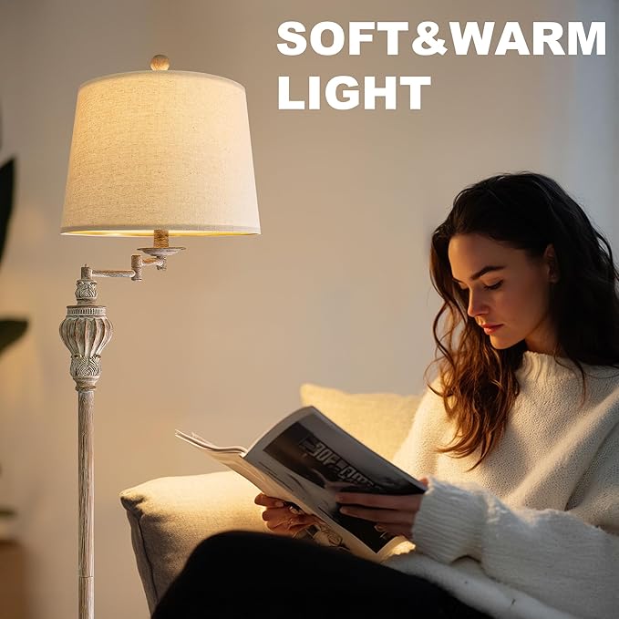 - Practical 350° Adjustable Swing Arm: The farmhouse floor lamp for bedroom allowing you to easily direct the light where you need it most. This bedside lamp provides flexibility and convenience in illuminating different areas of your room
