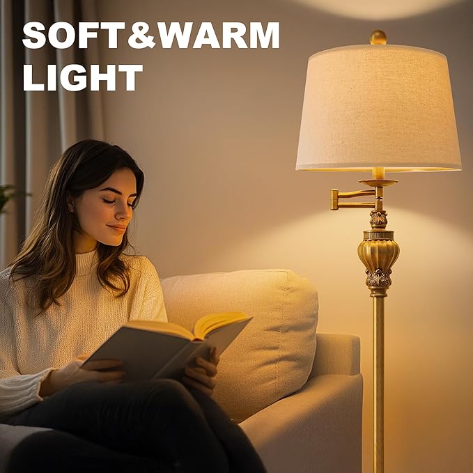 - Practical 350° Adjustable Swing Arm: The farmhouse floor lamp for bedroom allowing you to easily direct the light where you need it most. This bedside lamp provides flexibility and convenience in illuminating different areas of your room
