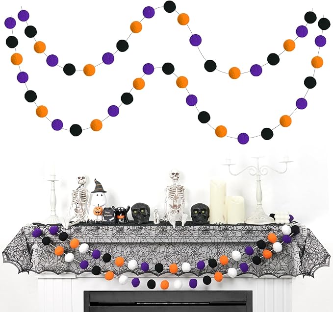 TBD Decor 2pk Halloween Decorations Pom Pom Garland,13FT Colorful Large Felt Ball Garland,Cute Hanging Halloween Party Decorations for Mantle,Indoor Birthday Party Supplies
