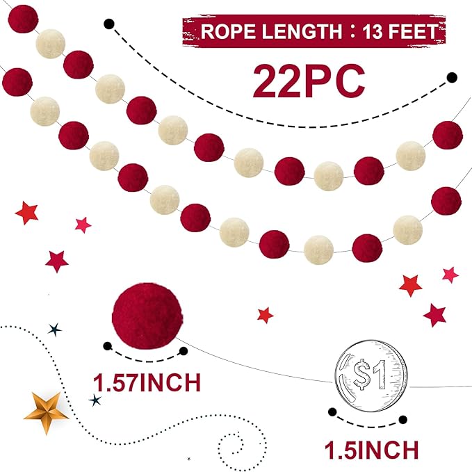 - Soft & Safe Felt: Crafted from premium, high-quality felt balls, this garland offers an exceptionally soft and plush texture, adding both visual appeal and a cozy feel to your decor. Perfect for creating a warm and inviting atmosphere at any event.