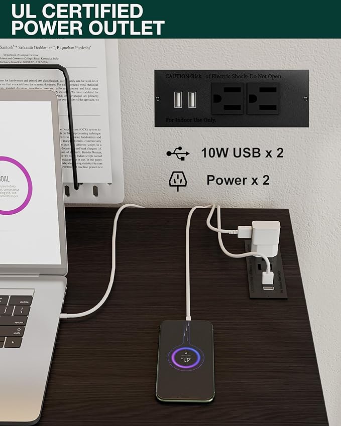 - πππ‘π§πππ₯ππ§ππ π£π’πͺππ₯ ππ¨π β ππππ₯ππ ππ©ππ₯π¬π§πππ‘π ππ§ π’π‘ππ β Stay powered and productive with 2 built-in AC outlets and 2 USB portsβperfect for laptops, phones, tablets, and more. No more messy extension cords or reaching for distant plugs; this smart design keeps all your devices charged and your workspace neat