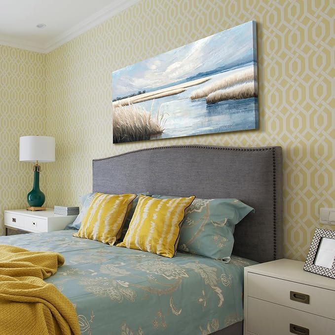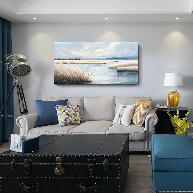 amatop Extra Large Coastal Marsh Landscape Wall Art – Neutral Blue Beige Wetland Canvas Print for Bedroom Living Room Office – Serene Nature Wall Decor,Oversized Ocean Artwork for Home Decoration