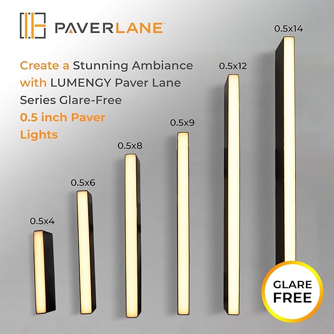 - Stunning Design - Lumengy Paver Lane series offers the longest size in our inventory, measuring 0.5x18 (0.55 x 17.72 inches). Its super slim design is perfect for creating thin linear highlights between pavers, along walls, and near planters, adding sophistication and elegance to your outdoor space. Experience a glare-free effect and enjoy the warm ambient light that ensures safety and comfort.