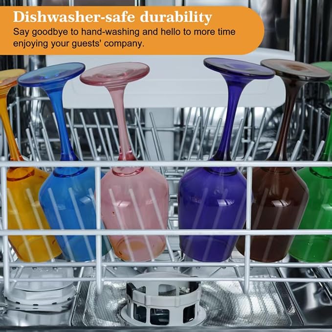 - 【Stable Base to Prevent Spills and Tipping】The stable base of Glazvia colored wine glassware ensures they won’t tip over easily.This thoughtful design of the multicolor wine glasses provides stability, reducing the risk of spills and making these wine glasses a practical choice for parties, gatherings, or formal events. Whether you're hosting a dinner party or just relaxing at home, this colored wine glass set give you peace of mind while enhancing your wine experience.