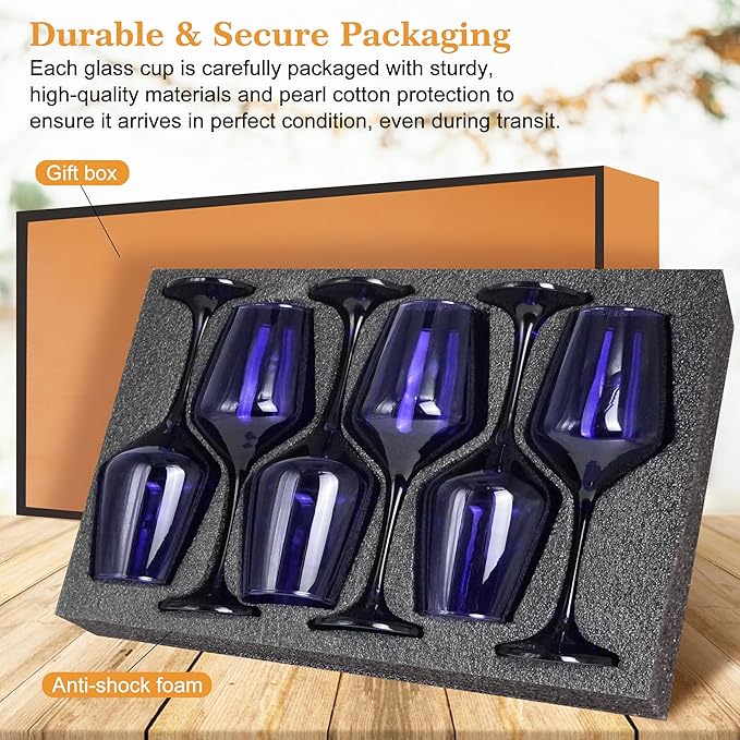 - 【Elegant and Secure Packaging】Glazvia unique wine glasses is carefully packaged in an elegant and durable box to ensure safe delivery. The sturdy packaging protects the Purple glasses drinkware during shipping, so you can be confident they will arrive in perfect condition. Whether purchasing for personal use or as a wine glasses gift set, this thoughtful packaging adds an extra touch of sophistication, making the unique wine glasses set of 6 as an wine glass gifts for women.