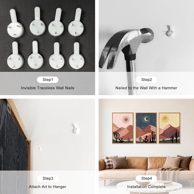 - 【Artistic Style】This boho desert framed canvas wall art set features vibrant sun and moon art prints combined with modern cactus paintings, showcasing a unique artistic charm that is perfect for those seeking individuality in home decor