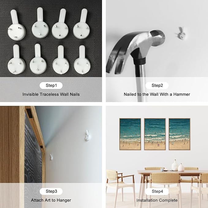 - 【Simple to Install】Each of these three blue coastal art prints pieces measures 16x24inches. It comes with all the necessary accessories so it's simple and easy to install. Simply choose where you want to decorate, make sure it's level and aligned the way you want it, and then nail it down with non-marking nails.