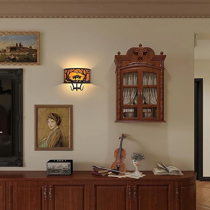 TOCHIC Farmhouse Wall Sconce, Rustic Vintage Indoor Wall Light Fixture, 2-Light Western Cow Wall Mount Light for Bedroom, Hallway, Living Room, Stairway